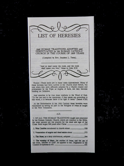List Of Heresies and Human Traditions Adopted and Perpetuated by the Roman Catholic Church Over 1600 Years.