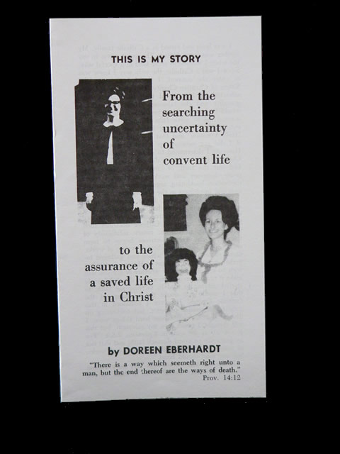 Devotion to Mary and the Saints was a part of Convent life; with it came repetitious prayer before Statues. Doreen was trying to work and pray her way to heaven until she learned Rom 6:23 “the gift of God is eternal life” which can be found only in Jesus Christ.