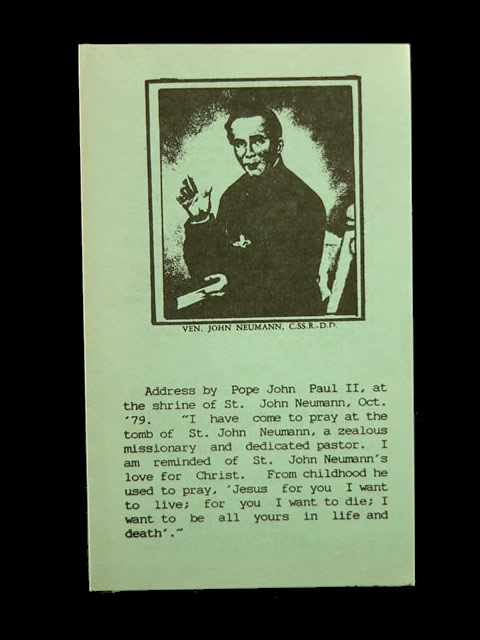 Bishop John Neumann, Converted to Christ yet praised by Pope John Paul II By Frank A. Eberhardt