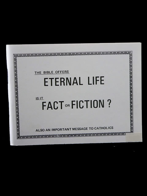 This tract sized color leaflet shows how the New Catechism of the Catholic Faith 1994 Ed opposes the Catholic Bible. The 16 panel foldout contains a doctrinal time line, a glossary of Catholic terms and a Gospel presentation.