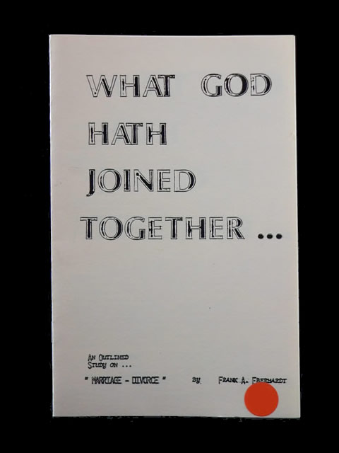 This outlined Bible study on marriage and divorce deals with the hard questions and objections often raised in favor of divorce and remarriage. The Biblical testimony of marriage and the ramifications of divorce and adultery are discussed in this booklet. It gives us something to think about.